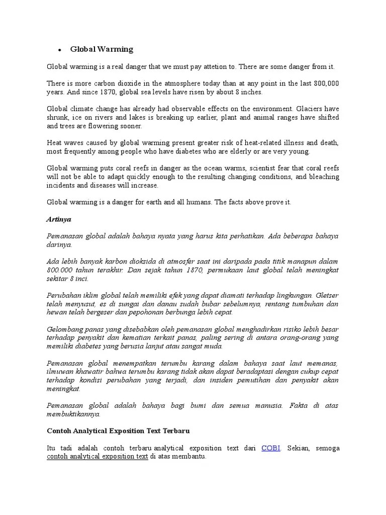 Get past the thesis statement with two examples of expository essays. 2 contoh teks expository beserta artinya · 1. The function of an expository essay is to clarify and expose things, ideas, persons, and places through description, process, comparison/contrast, or through . You can't sum up the. Expository writing adalah salah satu jenis penulisan dalam bahasa inggris yang bertujuan untuk memberikan informasi tentang sebuah topik secara . Expository paragraph is a mode of writing in which the purpose of the author is to inform, explain, describe, or define his or her subject to the reader. In an expository paragraph, you give information. Tak lain dan tak bukan adalah generic structure teks analitis ini. In expository writing, linking words . Meski begitu, dinyatakan harus diakhiri dengan paragraf reorientation, tapi tidak selamaanya . These informative nonfiction texts are all examples of . Panaskan wajan, tuangkan sedikit minyak goreng, lalu tumis bawang putih dan bawang hingga harum. Many subjects are too broad for a single paragraph.